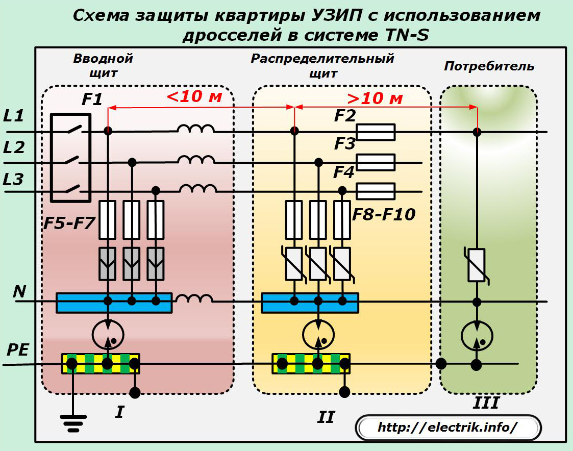 Ak je umiestnená v blízkosti konštrukčných prvkov zariadenia, potom sú do obvodu umelo začlenené ďalšie impulzné izolačné tlmivky, ktoré vytvárajú oneskorovací reťazec. Ich indukčnosť je vyladená v rámci 6-15 mikrogenézy v závislosti od typu príkonu použitého v budove.