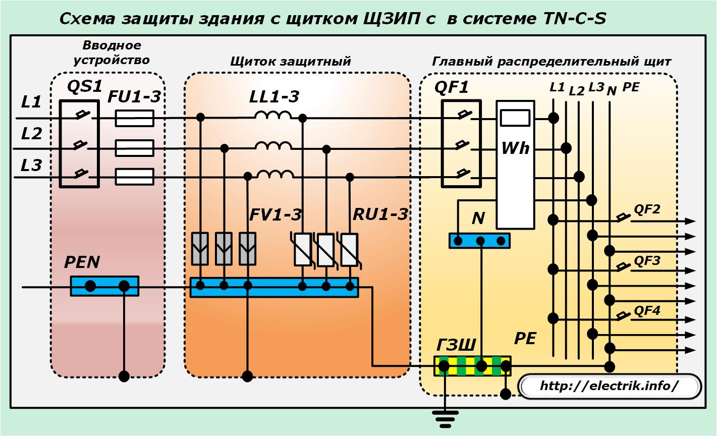 V tejto schéme prepäťové ochrany všetkých troch tried eliminujú prepäťové impulzy medzi fázami vedenia a pracovnou nulou N pozdĺž reťazcov drôt-drôt. Funkcia redukcie prepätia v bežnom režime je priradená k zvodičom určitej triedy z dôvodu ich spojenia medzi pracovnou a ochrannou nulou.