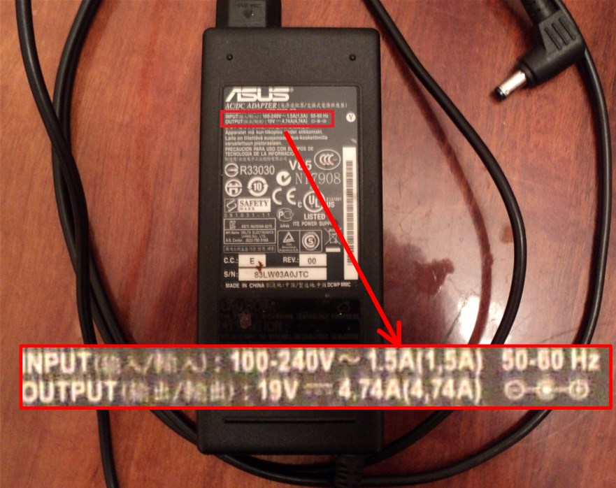 Na jeho dobitie sa používa napájací zdroj, ktorý prevádza striedavé napätie ~ 220 V / 50 Hz na hodnotu = 19 V.