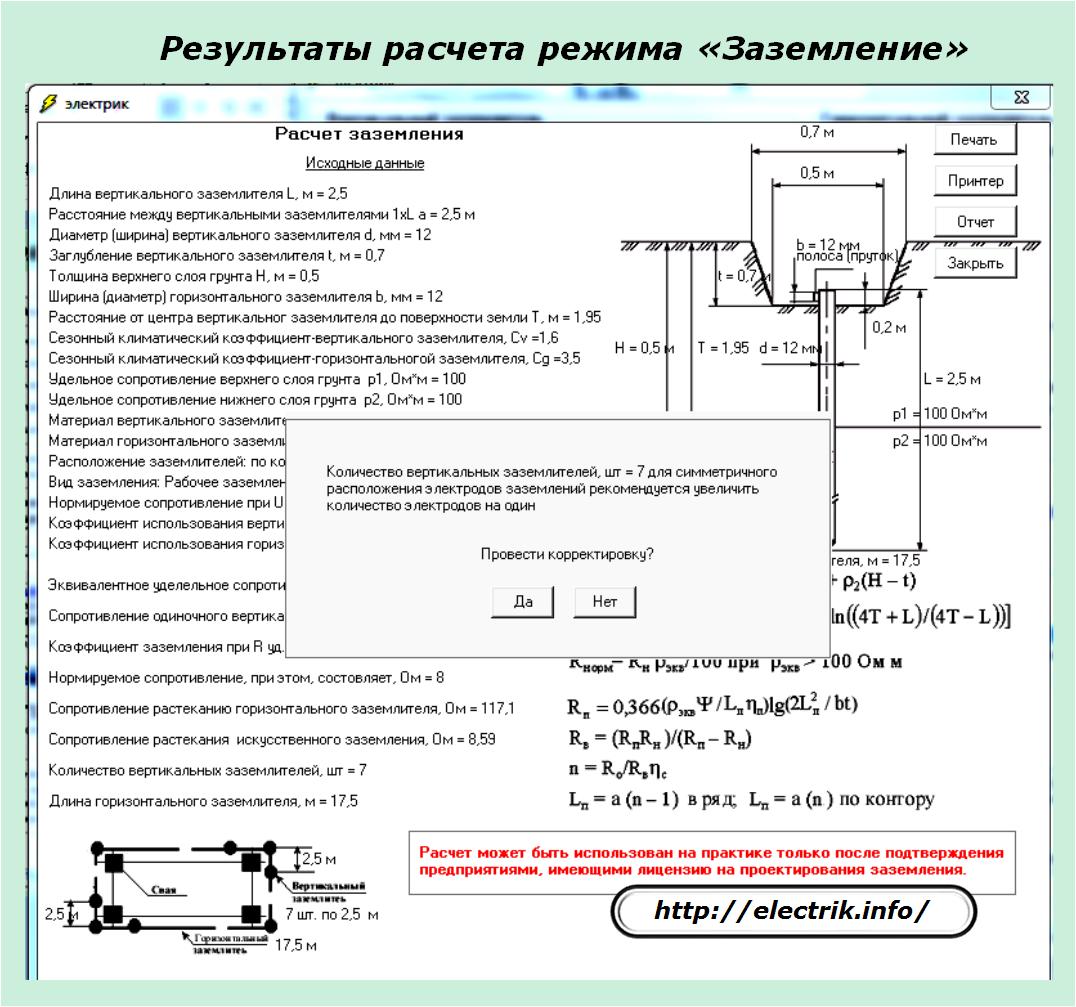 Elektrický program nezávisle a pomerne rýchlo vykonáva celý výpočet uzemňovacej slučky, ponúka distribučnú schému a počet uzemňovacích vodičov a geometrické rozmery všetkých konštrukčných prvkov.